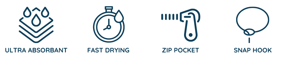 Zip Pocket – Each towel has a zip pocket - perfect for holding your phone, keys, gym card, earphones, etc.